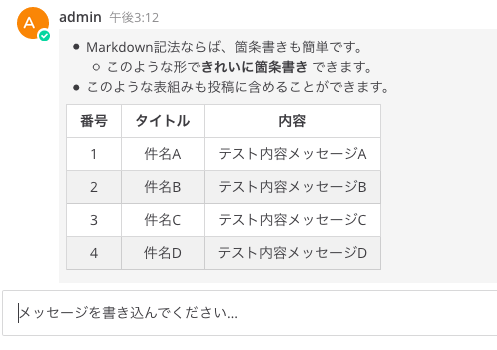 Markdown記法でのメッセージ投稿例