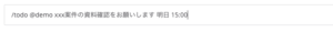 例えば、@demo さん宛に、資料確認のTODOを登録してみます。