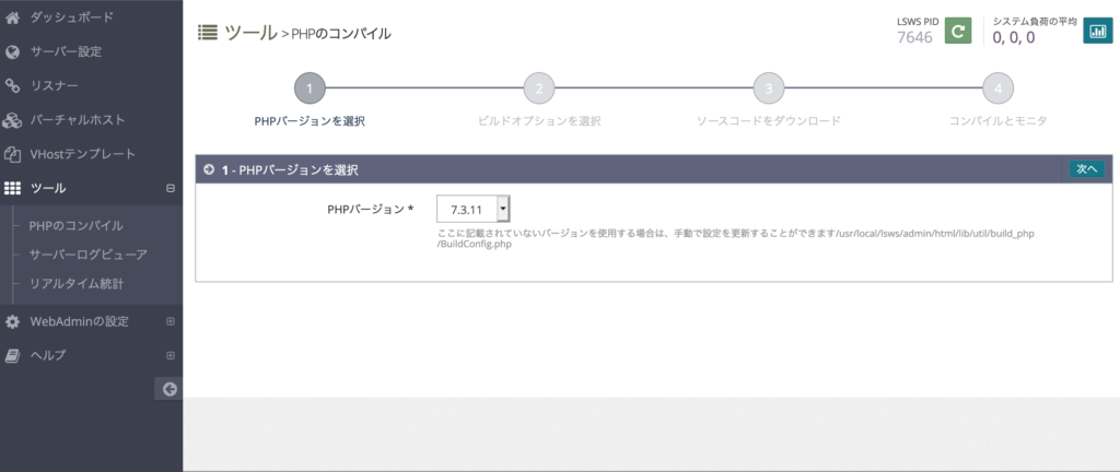 コンパイルオプション等を指定したPHPインストールが必要な場合は、GUI上で指定ができるこの機能が便利かもしれません。